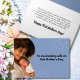 Celebrate the very first Mother's Day with this heartwarming card! Featuring a space for your favourite photo on the front, this card allows you to showcase the beautiful bond between your wife and your child. The heartfelt message inside reads: "This picture perfectly captures the beginning of your incredible journey as a mum. The love and connection you share with our little one is already so beautiful. Thank you for your endless patience, strength, and love. You amaze me every day. Happy First Mother's Day!" This sentimental card is a perfect way to express your love and appreciation for your wife on her very special first Mother's Day.