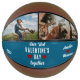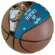 Our First Valentine's Day Together 2 Photos Basketball. Modern personalised basketball featuring 2 photos, modern and trendy typography saying Our first Valentine's Day together, 3 red hearts, names and year. Add your names, 2 photos and the year and make a lovely gift for your boyfriend who loves sports.