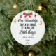 Celebrate the special bond of friendship with a custom name ceramic ornament that beautifully captures the essence of your connection. Featuring the heartfelt quote, "Our Friendship isn't a big thing, it's a million little things," this ornament is perfect for commemorating cherished memories and moments shared. Personalise it with names or Photos to create a thoughtful gift that friends will treasure for years. Hang it on a tree or display it in your home as a reminder of your friendship.