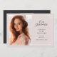 Beautiful graduation photo announcement features a vertical or portrait orientated photo aligned at the left, with "our graduate" and your graduate's name, school, and graduation year to the right. Delicate geometric detailing completes the look. Add a personal message to the back, along with an additional photo.