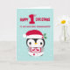 Send your Christmas wishes to your dear great granddaughter (from plural you) with this card of an adorable little penguin wearing a Santa along with a bib and diapers for her first Christmas. © Ness Nordberg