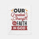 Declare your source of strength with this bold and inspiring quote: “Our Greatest Strength Is Faith in God.” Featuring clean, modern typography with vibrant accents, this faith-based design is perfect for anyone who walks boldly in God’s truth. Ideal for shirts, mugs, phone cases, posters, and stickers—whether you're uplifting yourself or gifting encouragement to others, this design is a daily reminder of where true strength comes from.