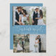 Simple and minimalistic wedding thank you card featuring 4 of your wedding photos with a text that says "our hearts are full" in a hand lettered script with hearts. Message on the back of the card is editable and another picture can be added as well. This 2-sided thank you card is so timelessly stylish. The background is denim blue.