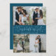 Simple and minimalistic wedding thank you card featuring 4 of your wedding photos with a text that says "our hearts are full" in a hand lettered script with hearts. Message on the back of the card is editable and another picture can be added as well. This 2-sided thank you card is so timelessly stylish. The background is teal.