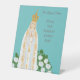 The first apparition of Fátima took place on May 13, 1917, in Cova da Iria, Portugal, to three little shepherds, Lúcia, Francisco, and Jacinta. Over the next six months, Our Lady of Fatima made several requests and shared secrets with the three seers. Today, there are two processions in the Sanctuary: the Procession of Candles and the Procession of Farewell. The image of Our Lady of Fátima is carried on a litter decorated with white roses. The rose, from which the word rosary derives, is preferred in decoration as it is the flower of Our Lady of Fátima, being white in the little chapel and on the litter. The litter can contain 600 or more roses that are placed there still in bud and then open slowly. The presence of this large amount of beautiful flowers on the litter inspired this illustration. Gift this item to a devotee of the Virgin of Fatima, I am sure it will be appreciated.