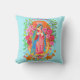 A stylised original painting of the famous image of "Our Lady of Guadalupe" on a durable accent pillow. This very unique pillow will add a colourful touch of inspiration to any space. Customise in your choice of background colour to make a very special housewarming or hostess gift!