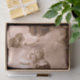 The application of this decoupage paper was very simple , applied with PVA glue on a plywood surface. The colour stayed true to paper before application . I used cling film to apply over ply wood , no wrinkles , very pleased with the result.