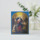 Perhaps the inspiration for this depiction of the Blessed Mother arises from the writing of St. Irenaeus, bishop of Lyons (martyred in 203) in his treatise “Adversus Haereses” (Against Heresies): “Mary, the Virgin, is found to be obedient, saying: ‘Behold, O Lord, your handmaid. Be it done to me according to your word.’ Eve, however, was disobedient; and when yet a virgin, she did not obey. … Having become disobedient, (Eve) was made the cause of death for herself and for the whole human race; so also Mary, betrothed to a man but nevertheless still a virgin, being obedient, was made the cause of salvation for herself and for the whole human race. … Thus, the knot of Eve’s disobedience was loosed by the obedience of Mary. What the virgin Eve had bound in unbelief, the Virgin Mary loosed through faith.”