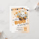 Invite friends and family to a spooky-cute celebration with this “Our Little Boo is Turning Two” ghost birthday invitation. Featuring an adorable ghost surrounded by cheerful orange florals and a festive banner, this Halloween-themed design is perfect for a fall birthday party. Easily personalise with your party details for a fun and memorable invite.