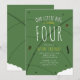 Modern and fun birthday invitation featuring a cute lady bug and different kinds insects on a leaf background. The invitation reads: Our Little Bug