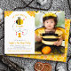 “Our little honey bee.” Here’s a great way to celebrate your child’s birthday with friends and family. Send out this cute, fun, simple, festive, modern, gender neutral, personalised photo birthday party invitation. A sweet, playful visual of a cute, kawaii, bee with orange yellow calligraphy script overlaying white is on the left side and the photo of your choice is on the right. An adorable patchwork yellow, apricot and orange honeycomb pattern is on the back. This charming invitation is guaranteed to set just the right tone for your event! Matching and coordinating plates, napkins, stickers, thank you notes and other birthday goodies are also available in this special and fun collection.