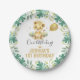 Sweet lion themed birthday paper plate for a baby boy featuring a cute watercolor lion, some foliage, gold crown, gold colored balloon and sash. This lion themed birthday plate is ideal for a boy's king or lion themed birthday party.
