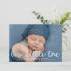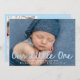 Celebrate your new arrival with this sweet and modern photo birth announcement featuring your baby’s horizontal photo and the phrase “Our Little One” in light blue handwritten script. The baby's name and birth stats are displayed below in crisp white lettering, creating a clean and contemporary look. The back of the card includes a vertical photo and space for a personalised thank you message, making it a meaningful keepsake for friends and family. A perfect design for baby boys or anyone who loves a soft, serene colour palette.