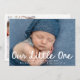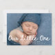 Celebrate your newest arrival with this sweet and modern “Our Little One” photo birth announcement card. The front features your baby’s horizontal photo with “Our Little One” displayed in a handwritten white script, paired with your baby’s name, birth date, and stats below. The back of the card includes a vertical photo and a customisable thank you message, allowing you to express gratitude to loved ones while sharing another special moment. Perfect for baby boys, girls, or gender-neutral announcements, this photo-forward design makes a heartfelt keepsake for friends and family.