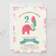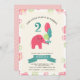 This adorable birthday invitation features a graphic of a pink elephant holding colourful balloons. The design is accented with pink and green flowers along the border. The design offers custom text for use of any age.