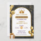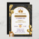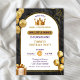 Adorable boys little prince birthday party invitation template. Cute prince birthday invitation with gold grown