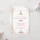 Sweet fairytale invitation featuring a delicate floral in pink and green, with gold number 1 and a little princess swan at the bottom. The back of the invitation has matching floral design. Design©Rosalind Moore, Cherry Lane Designs.