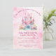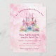 Our LIttle Princess is Turning One Birthday Invitation. Join us in celebrating a magical milestone as our little princess turns one! This adorable invitation features a dreamy clouded pink background with a charming castle in virbrant shades of pink, blue, yellow, and purple. The cute child's font in bright pink adds a playful touch, making this the perfect invitation to announce your little one's specail day. Get ready for a royal celebration filled with fun, laughter, and joy!