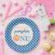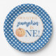 Our Little Pumpkin blue plaid first birthday Paper Plate