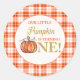 Our Little Pumpkin Orange plaid first birthday Classic Round Sticker