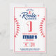 Score big on fun with this Little Rookie Baseball Birthday Invitation. This slammin' design features baseball stitches, a pint-sized batter hitting a home run, and blue & red colour palette. It's the perfect way to celebrate your little all-star's special day. Let's gear up for a celebration that's a home run.