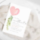 Invite your friends and loved ones to celebrate your Valentine's Day themed baby shower with our watercolor pink heart-shaped balloon and eucalyptus design.