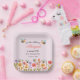 Celebrate your little one with this sweet “Our Little Wildflower” 1st birthday party paper plates, featuring a soft pink background and a charming border of colorful wildflowers and buzzing bees along the bottom. Your child’s name is displayed in a beautiful script font in a coordinating floral shade, while the party details are set in an elegant serif font for a timeless touch. Designed to be easy to customize, this plate is as practical as it is adorable.