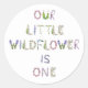 Delicate watercolor like floral design spells out "Our little wildflower is one" using real flowers, such as sage, daisy and wisteria. Celebrate your daughter's big birthday with this boho cottage garden feel.