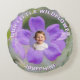 Our Little Wildflower Lilac Geranium Custom Photo Round Cushion