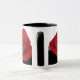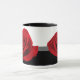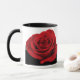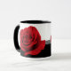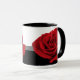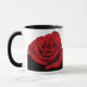 Mug featuring a red rose with a simple black & grey lined background of the bottom half.