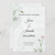An elegant wedding invitation with a soft, nature-inspired design, featuring a serene watercolor background and delicate floral touches that add a sense of romance and simplicity. The carefully chosen fonts give the invitation a modern yet sophisticated feel, with a balanced layout that clearly and attractively highlights the couple's names and the details of the occasion.