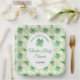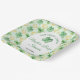 A charming St. Patrick’s Day baby shower plate featuring a soft green background, golden horseshoes, and scattered four‑leaf clovers for a sweet “lucky charm” theme. The central white oval frames the event details beautifully, creating a warm, welcoming design perfect for celebrating a growing family. Ideal for March celebrations, Irish‑inspired themes, or any baby shower that embraces luck, joy, and new beginnings.