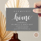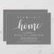 Our new home, housewarming party invitation card. Planning a housewarming party in celebrating your new home with your family and friends? Invite your guests with this housewarming party invitation card, in beautiful and perfect Rustic script, dark grey themed.