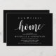 Our new home, housewarming party invitation card. Planning a housewarming party in celebrating your new home with your family and friends? Invite your guests with this housewarming party invitation card, in beautiful and perfect Rustic script, classy black themed.