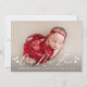 Elegant photo birth announcement featuring "Our New Love" displayed in a white script overlay with hearts on each side. Personalise the simple birth announcement with a horizontal newborn photo, the baby's name, and birth stats. The announcement reverses to display 3 additional photos and text with a solid dark red background. The 4 photo birth announcement is perfect to use as a Valentine's day birth announcement!