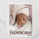 Our Newborn Miracle Foil Birth Announcement Card featuring your newborn baby photo on the front with the text "Our Newborn Miracle" in real shimmering foil embellishment. You can keep as-is or customise to ex: "Our Newborn Daughter/sun" or the baby's first name.