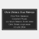 This is a simple moving announcement to share your company's change of address. This black sticker has lines of white display text. You can edit the text to show your company name, new address, and phone number.
