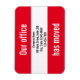 This bright and white magnet has three fields. Together the red fields say 'Our office has moved'. You can edit the black text in the white field to customise your postcard with your company's name, address, and phone number.