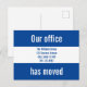 Our Office Have Moved Blue and White Announcement Postcard