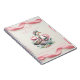 A graceful goose stands upright, adorned with a delicate floral wreath of pink roses and green leaves atop its head. A soft pink ribbon is tied around its neck, enhancing its charming and refined appearance. Its white feathers are accented with subtle brownish patterns, while its bright orange beak and feet provide a striking contrast. The background is soft and elegant, complementing the goose’s gentle aesthetic.