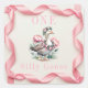 A graceful goose stands upright, adorned with a delicate floral wreath of pink roses and green leaves atop its head. A soft pink ribbon is tied around its neck, enhancing its charming and refined appearance. Its white feathers are accented with subtle brownish patterns, while its bright orange beak and feet provide a striking contrast. The background is soft and elegant, complementing the goose’s gentle aesthetic.