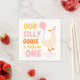 Add a splash of fun to your little one's special day with this “Our Silly Goose is Turning One” colourful birthday party napkin! Featuring a charming and silly goose design in cheerful rainbow hues, it’s the perfect addition to a playful first birthday celebration.