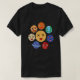 I give wanted to give this a 4 instead of a 5 because these Basic DARK T0shirts run unexpectedly SLIM or Narrow. Which is great if you do not have a potbelly, but I have a paunch. It isn't the shirt's fault that I've got a beer belly. The design and shirt itself is a quality cotton shirt. The color is more of a deep purple, but still a very pretty color. The Basic DARK T-shirts run a bit SLIMMER than the Basic Ts. The neck is a fraction narrower (or seems to be narrower) also. I'm a paunchy middle-aged woman and my neck is 12 inches (31cm) thick and the neckline fell about the same as in the photo of the man, and I had the desire to tug it a bit. So if you're a thick necked man or like loose shirts, be aware these are slimmer shirts. Once I get rid of my lockdown paunch it'll look great. The shirt washed well in cold water with no apparent bleeding. We don't have a dryer, so it hung dry. Did not shrink. Love the colors and the design. The design looks smaller on my shirt than it does on the model on-line. But still, it looks good on the shirt. The printing looks as it does on the model, just the size seems fractionally smaller. Washed garment in cold water, hung dry and design appeared unaffected.