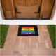 This colorful design features the state of Wyoming constructed of a rainbow.