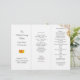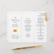 Tri-fold wedding program template with a fall theme. Orange and yellow Maple leaves and tree branches decorate this custom program to fold in thirds after purchase and will open accordion style for guests to read. All text is in template form to be replaced with your ceremony order and is an example only. Reverse will have no printing, colour or images - ONE SIDE PRINTING. Shown on the heaviest - linen- paper which may be changed.