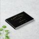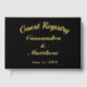 Fancy floral pattern on the back for the registry guest book. The bride and groom's names with date and guest registry are written on the front with a black background. Personalise the text for your information.