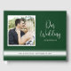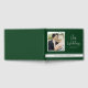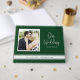 This emerald green wedding guest book features a traditional design. It offers elegant script text and a square photo frame. Personalise with the names and wedding date of the couple