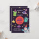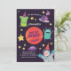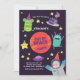 A colourful out of space party invitation with funny monsters, stars, birthday cake, a space craft and an astronaut wearing a party hat. The card is easy to customise with your wording, font, font colour, paper shape options and choice of six paper types.<br/><br/>Not exactly what you're looking for? All our products can be custom designed to meet your needs at no extra charge.<br/><br/>Simply contact us at heartfelthelper@gmail.com<br/><br/>Coordinating products available: Just ask us!