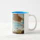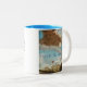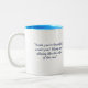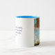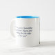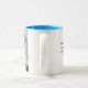 11 oz two tone blue on white ceramic mug featuring the cover of Josh's "Out Of The Blue" and a quote from the book.