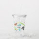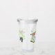 This plastic travel cup is perfect for showing off your outdoorsy side. It features a collage of outdoorsy themed graphics in pretty pastel colours of aqua blue, lime green, light yellow and a peachy coral. It includes illustrations of a kayak, hiking boots, binoculars, fanny packs, enamel mugs and butterflies. This plastic tumbler cup is ready to be personalised with a name in grey script lettering.